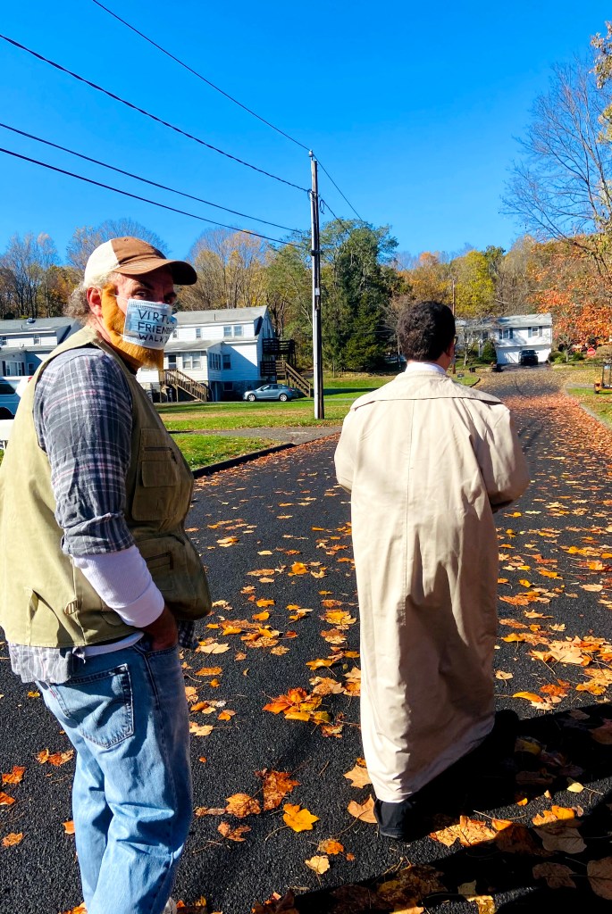 The trench coat was from his “Twin Peaks – Agent Dale Cooper” costume from a few years ago. We had the wings because he was going to be the “Teen Angel” to my “Beauty School Drop Out” for a party in the Cape that was cancelled due to the pandemic back in April.