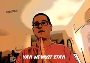 Between looking out the door and repeating “Storm is over soon, Storm go away, I am brave, Storm is over soon……” DC kept coming into the room with his hands in prayer position, bowing and saying “Yay! We Must Stay”. I just assumed it was more drama about the storm but I’d never heard him say this before so I asked him (thinking it must be a movie line) where this was from…..