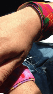 DC has gotten better over the years about the wristbands. Not that it is still not a little bit of a battle to get him to wear one, but he tolerates it. It needs to come off the moment we leave wherever we were, that required him to wear it the band. THE MOMENT; meaning THE MOMENT. It does not matter if we are in the middle to the road, that wrist band is in my face.