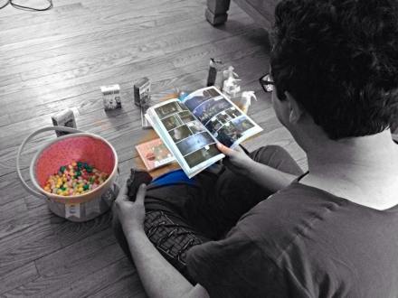 Everyday after he finishes eating the food portion of his breakfast, he takes his juice and water to the other room and finishes it while using his iPad and writing his ‘princess papers’. This is what he has done every single morning for years.