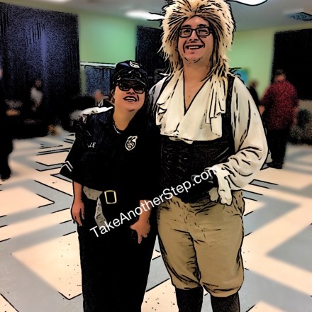 DC’s first “costumed” event was a dance held by his day/work program. DC does not normally attend the monthly dances because he says they are boring (and they sure are)… BUT when there is a costume involved, he is certainly willing to attend, even if just for a little while. Usually we just recycle a costume from a previous year for this event since he does not usually stay all that long.