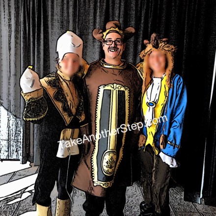 Back at the party, I had to first apologize to the director for choosing this costume, then explain that someone would need to help him if he needed the restroom again and show them how to get him out of it. Well…. DC heard “restroom” and you guessed it; one more time!